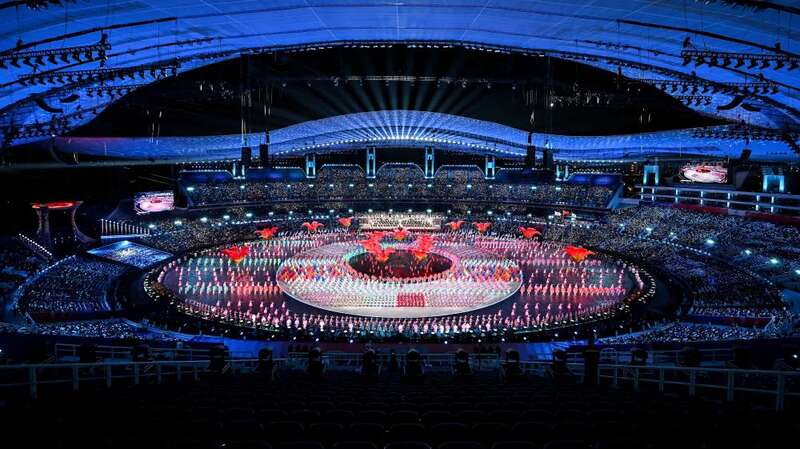 广东省体育代表团、香港特别行政区体育代表团、澳门特别行政区体育代表团在入场仪式上共同入场。新华社记者 赖向东 摄