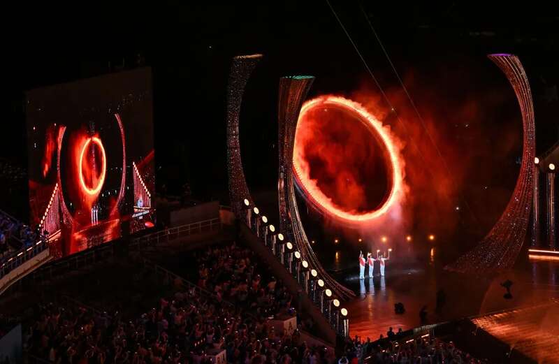 这是在开幕式现场拍摄的主火炬。新华社记者 李鑫 摄