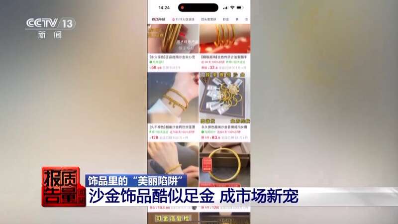 记者发现,目前市场上一种名为“沙金”的饰品十分畅销,款式各种各样,酷似足金首饰。