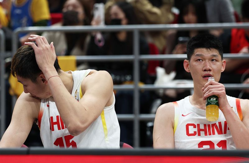 中国队状态不佳,两大中锋周琦(左)和胡金秋十分郁闷。刘占崑/摄