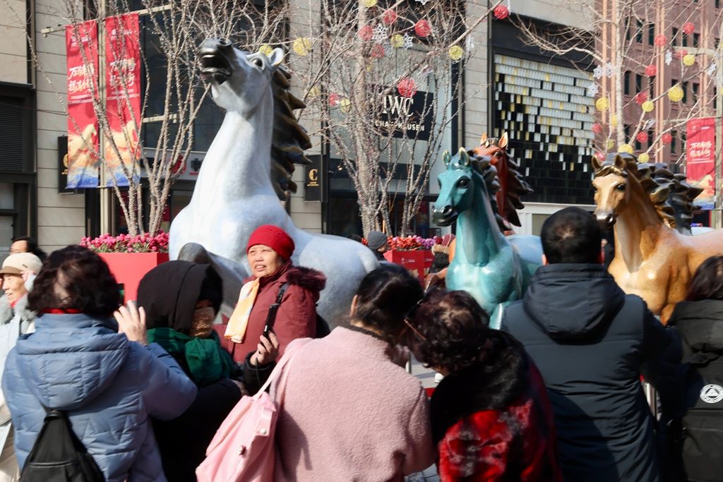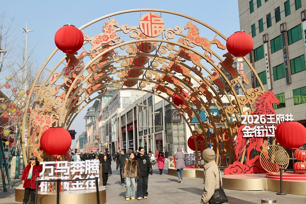 2026年1月29日,游客在北京王府井大街参观游览。马年将至,北京一些与马相关的艺术装置纷纷亮相,尽显年味。 中新社记者 易海菲 摄