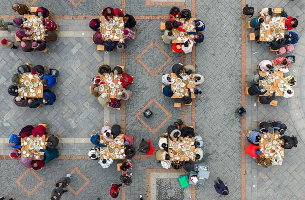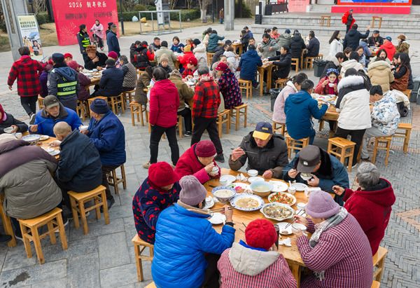 2026年1月31日,江苏省淮安市,居民与游客在洪泽区蒋坝镇年猪宴上品尝美味。春节临近,淮安市洪泽区蒋坝镇举办年猪宴活动,喜迎新春佳节。