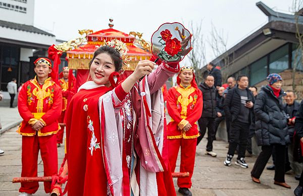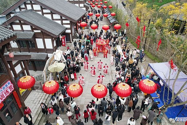 重庆:绣楼招亲演绎传统婚俗 花轿迎亲增添浓浓年味