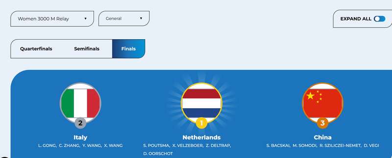 2026短道速滑世锦赛女子3000米接力项目的冠亚季军。国际滑冰联盟官网截屏