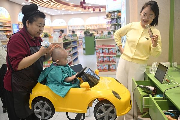 2026年3月20日,在位于甘肃省兰州市一家宝宝理发店内,孩童坐在玩具车内理发。当天是中国农历马年二月初二,中国民间有“二月二,剃龙头”的说法,兰州不少居民在这一天理发,该宝宝理发店开始营业就排号到了下午。