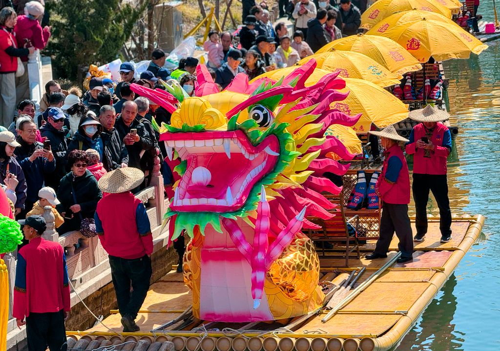 2026年3月20日,北京,二月二龙抬头恰逢春分节气,来自广西阳朔的非遗“金龙巡游”来到北京大运河,为现场观众送上美好祝福。