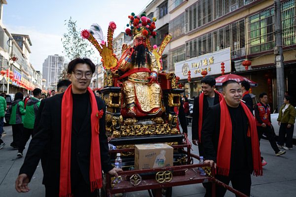 广东揭阳:人形机器人亮相“营老爷”民俗巡游