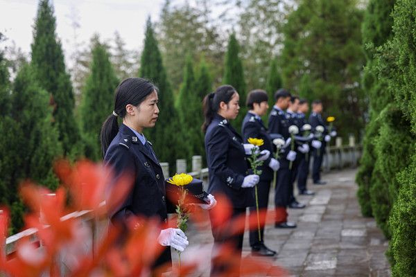 2026年4月3日,贵州省铜仁市,玉屏侗族自治县公安局组织民警来到小凤山烈士陵园开展祭奠活动,缅怀英烈,寄托哀思。