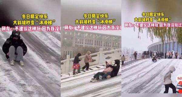 冬日限定快乐!当校园坡道披上冰衣,校园秒变“欢乐谷”。