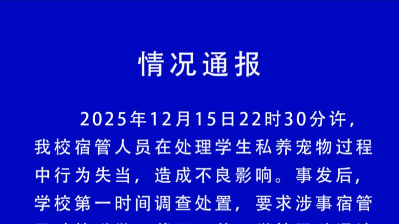 湖南一学校通报“宿管摔死学生小猫”:已辞退涉事人员