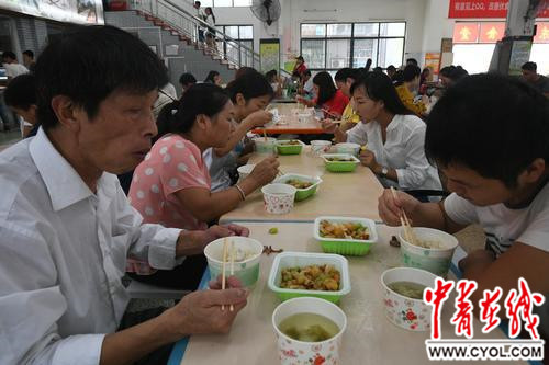 18岁武汉黄陂学生袁游,今年考入武汉职业技术学院电子信息工程光电应用专业。上午10点,办完报名相关手续后,他和爸爸袁志刚一起领取两张餐票,就在体育馆前的快餐处,领到盒饭:红烧鲫鱼、番茄炒蛋、宫保鸡丁、豆角。“学校的服务真到位,除了志愿者带领我们办手续,还免费提供盒饭,太细心了。”袁爸爸边吃边说,“我都没想到,学校为我们家长也提供免费盒饭。”