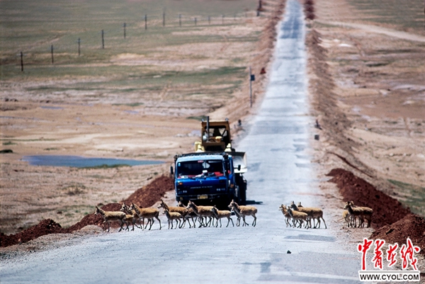 藏羚羊过马路 贺瑞明供图
