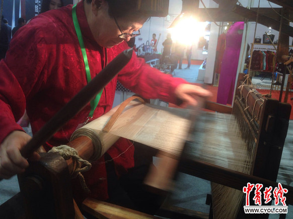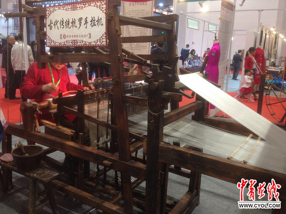 古代杭罗织机亮相丝绸国际博览会。(中国青年报·中青在线记者 李剑平/摄)