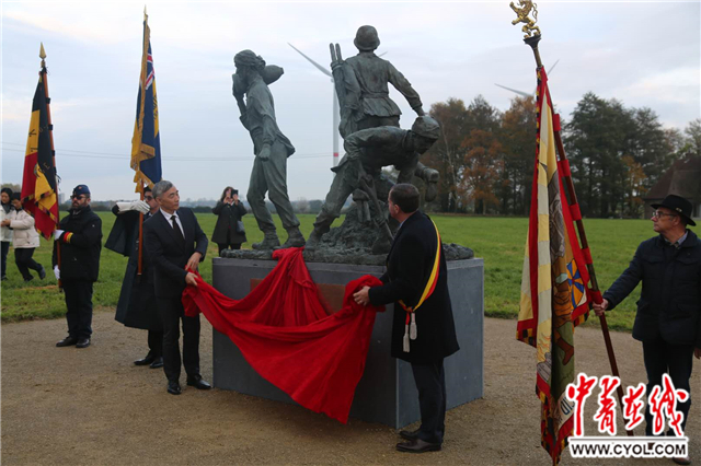 11月15日在比利时波普林格市揭幕的一战华工雕像。鞠辉/摄