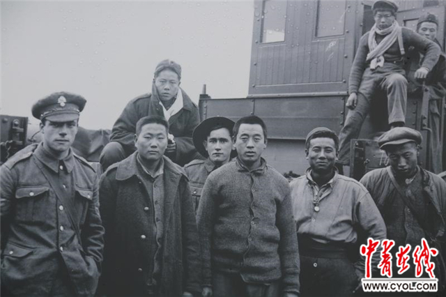 一战期间赴欧华工与英军军官在比利时波普林格合影照片。(史料照片)