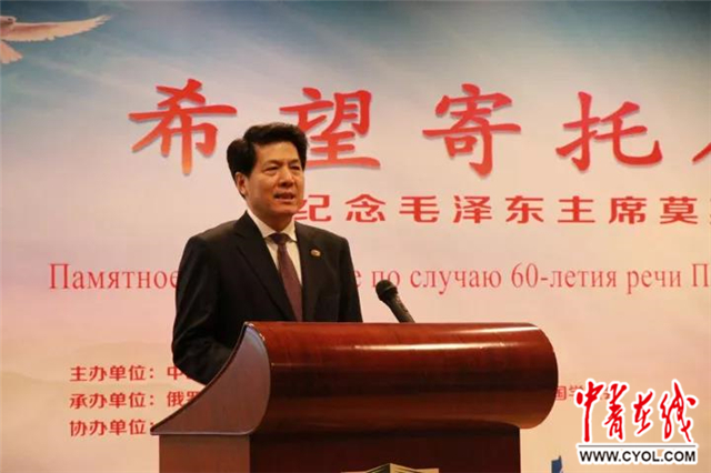 11月17日,毛主席“希望寄托在你们身上”讲话发表60周年纪念活动在莫斯科格林伍德贸易中心举行。