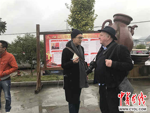 来自加纳的专家杜华在花茂村和当地居民交流。中国青年报·中青在线记者姜继葆摄