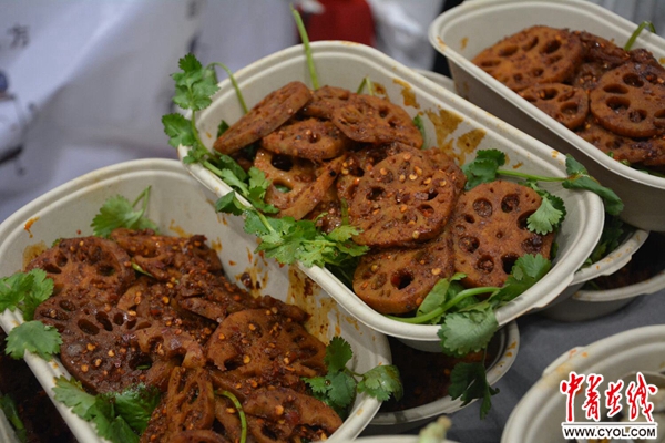 中青在线北京12月8日电(中国青年报·中青在线记者 产娟娟)“我们的酱是由药材与食材共同熬制的,健康又美味的一款辣酱,有三种口味,大家可以尝一尝。”“这些熟食都是用酱做调料的,每一种都有不同的味道。”“懒厨娘”辣酱的创始人徐红热情的为大家介绍她的“宝贝”——一款中医文化与辣酱相结合的新型调味品。一罐罐造型精致地辣酱整齐的摆放在展区里,一旁是各色熟食,在2017国际创新创业博览会上台湾美食+海峡两岸展区里,“懒厨娘”的展位前吸引了无数的观众驻足品尝。
