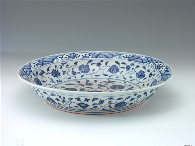 青花缠枝花卉盘,明宣德