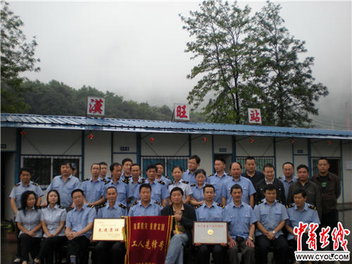 摄于2008年的汉旺火车站职工合影。(成都铁路局党委宣传部供图)
