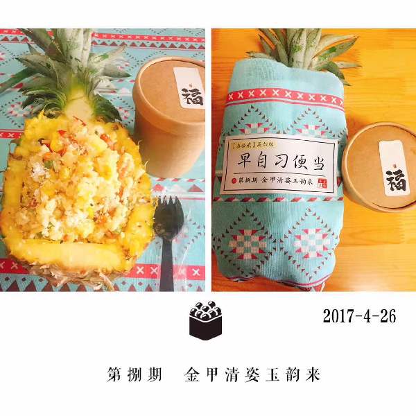 班里的吴同学曾一度情绪低迷,一段时间未到校学习。恰逢轮到为吴同学做便当的那天,得知他会来参加考试,王若聪就以“金甲清姿玉韵来”为主题,制作了菠萝炒饭,“希望他积极阳光,像菠萝王子一样坚强起来,披坚执锐,勇往直前。”