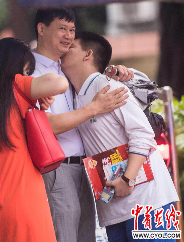 家长穿红衣送考祝旗开得胜