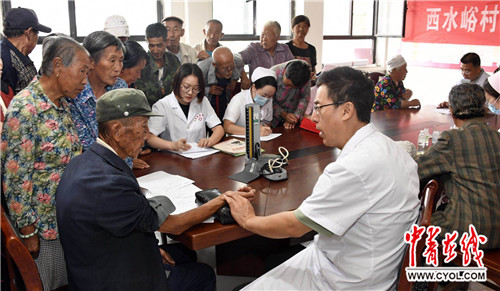 中医诊疗专家贺登峰教授为山西大同西水域村群众义诊。李欣/摄