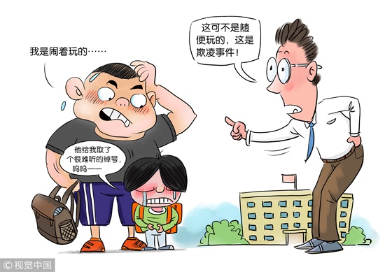 相关资料显示,包括“起侮辱性绰号”在内的语言欺凌,在校园欺凌现象中占比不容忽视。2017年5月,由南京大学社会风险与危机管理研究中心和中南大学社会风险研究中心联合发布的《中国校园欺凌调查报告》显示,语言欺凌行为发生率明显高于人际关系、身体以及网络欺凌行为,占23.3%。