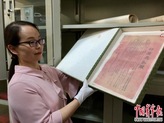 郧西县档案馆馆藏《什么是红军》传单原件。中国青年报·中国青年网记者 朱娟娟/摄