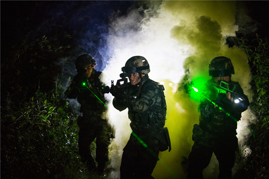 一中队官兵开展夜间反恐演练。本文图片均由王文涛/摄